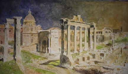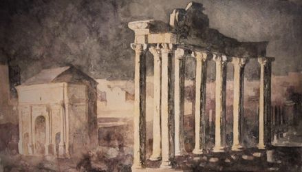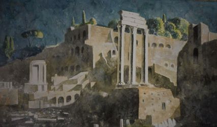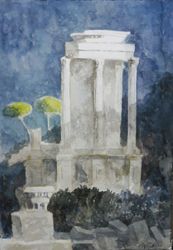 Templo de Saturno (nocturno) Acuarela sobre papel